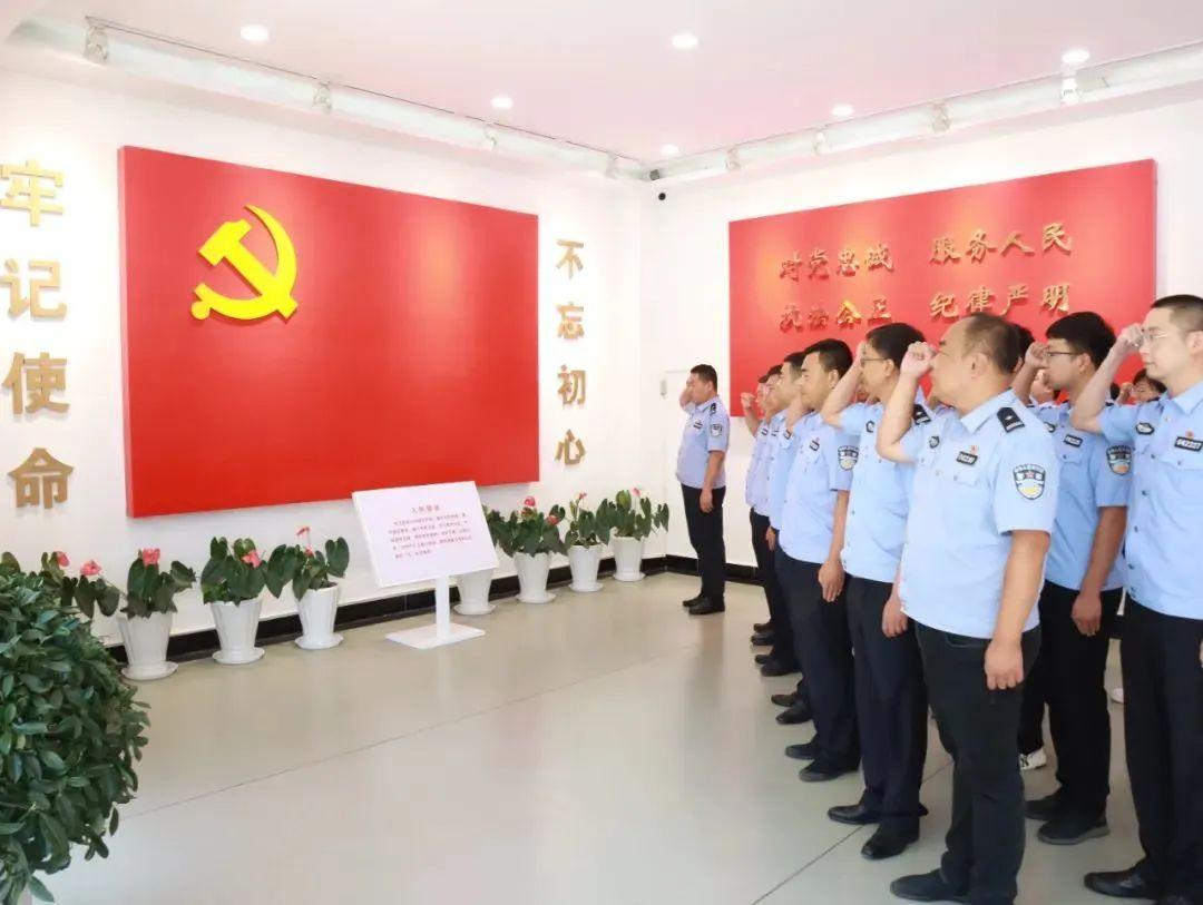 面對(duì)鮮紅的黨旗,全體人員一起高舉右拳,莊嚴(yán)宣誓:“我志愿加入中國(guó)共產(chǎn)黨……隨時(shí)準(zhǔn)備為黨和人民犧牲一切,永不叛黨”。莊嚴(yán)的誓詞,強(qiáng)烈震撼著在場(chǎng)的每一位黨員,一字一句,神圣而豪邁,體現(xiàn)了每個(gè)黨員對(duì)黨忠誠(chéng)、矢志不渝的堅(jiān)定決心,堅(jiān)定了為黨和人民的事業(yè)奮斗終生的理想和信念。局黨委要求,全體黨員民輔警要牢記入黨誓言,永葆入黨初心,鑄就絕對(duì)忠誠(chéng)的政治品格,提高善作善成的能力本領(lǐng),永葆昂揚(yáng)奮進(jìn)的精神狀態(tài)。