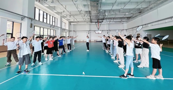 雄安容西云溪小學(xué)暑期托管課上孩子們正在學(xué)習(xí)羽毛球課程 雄安容西云溪小學(xué)供圖