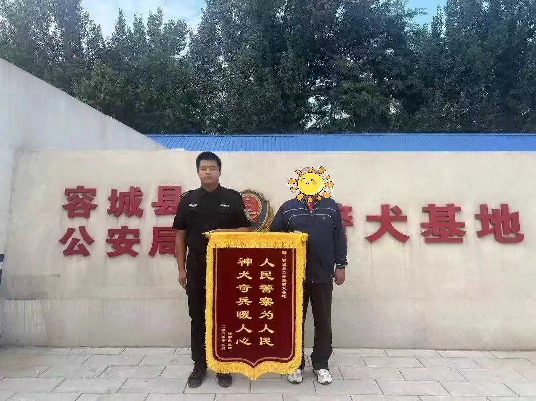 幾日后,報警人李先生將一面印有“人民警察為人民 神犬奇兵暖人心”的錦旗送到了警犬基地民警手中,對民警和警犬“路虎”認真負責的工作態(tài)度連聲稱贊。