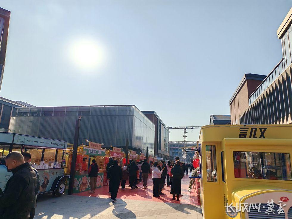 商場南側(cè)的年貨市集與美食街。邊晨旭 攝