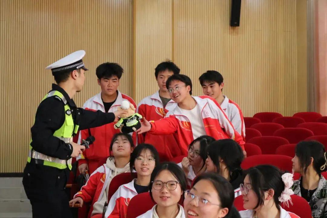 活動(dòng)伊始,民警結(jié)合高中生的出行特點(diǎn),用生動(dòng)的語言和真實(shí)案例,講解了交通安全知識(shí),提醒同學(xué)們?cè)隍T車和乘車時(shí)要注意安全,正確佩戴安全頭盔和系好安全帶。在有獎(jiǎng)問答環(huán)節(jié),同學(xué)們踴躍參與,現(xiàn)場(chǎng)氣氛熱烈,回答正確還有精美小禮品,進(jìn)一步激發(fā)了大家的參與熱情。緊接著,民警耐心解答了同學(xué)們提出的各種交通安全疑問。