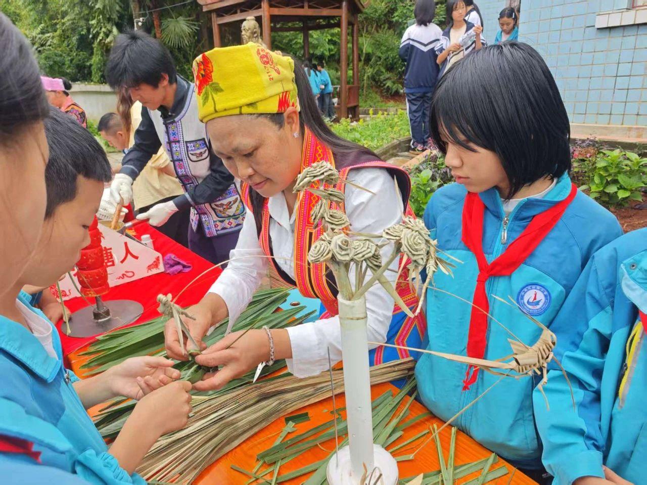 在傳承人與黨員志愿者的指導下,孩子們化身“小小傳承人”:揉捏面團嘗試塑形,手握糖勺勾勒圖案,學習編織靈動的草編蚱蜢或斑斕苗線手鏈,近距離感受吹糖人的神奇。生動有趣的沉浸式體驗,有效點燃了青少年對本土文化的熱愛,在幼小心田播撒下守護文化根脈、增強文化自信的種子。
