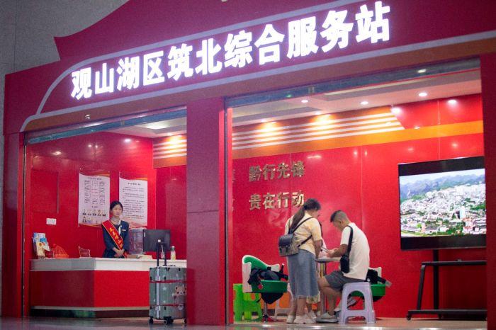 走進(jìn)貴陽北站西出口,一抹醒目的紅色標(biāo)識(shí)格外引人注目——這是觀山湖區(qū)高鐵經(jīng)濟(jì)帶服務(wù)中心于7月底牽頭打造并正式啟用的觀山湖區(qū)筑北綜合服務(wù)站?!懊赓M(fèi)充電、飲水、暫存行李,這些服務(wù)真的很貼心?!眮碜灾貞c的張先生一家在服務(wù)站休憩時(shí)感慨道,不由得連連稱贊。盡管服務(wù)站投用時(shí)間不足一個(gè)月,這座服務(wù)站已迅速成為貴陽北站服務(wù)旅客、保障秩序的“關(guān)鍵力量”。據(jù)統(tǒng)計(jì),截至目前,服務(wù)站累計(jì)服務(wù)旅客已突破5400人次。