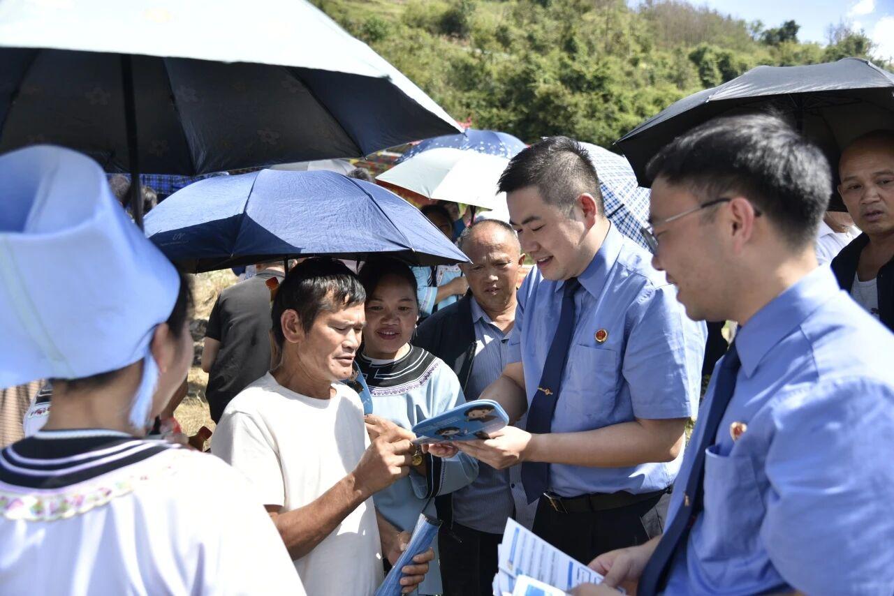 10月9日,正值水族傳統(tǒng)節(jié)日端節(jié)之際,貴州省黔南州三都縣周覃鎮(zhèn)的新各端坡上彩旗飄揚(yáng),身著水族服飾的群眾陸續(xù)聚集,準(zhǔn)備參加傳統(tǒng)的賽馬盛會(huì)。三都縣檢察院的“雙語(yǔ)普法小分隊(duì)”帶著法律手冊(cè)、宣傳折扇來(lái)到現(xiàn)場(chǎng),為這場(chǎng)民俗盛宴增添了濃郁的法治氣息。