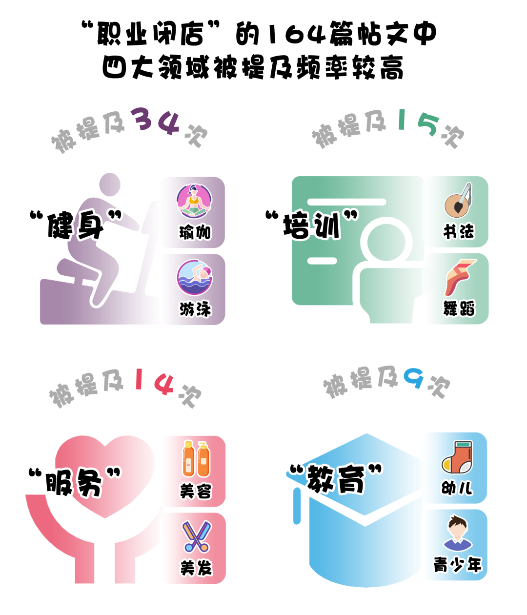 以“職業(yè)閉店”為關鍵詞,在小紅書選取164篇相關帖文,對帖文內容進行行業(yè)分類統(tǒng)計后發(fā)現(xiàn),“健身”“培訓”“服務”“教育”成為消費者吐槽頻次最高的四個預付式消費領域。