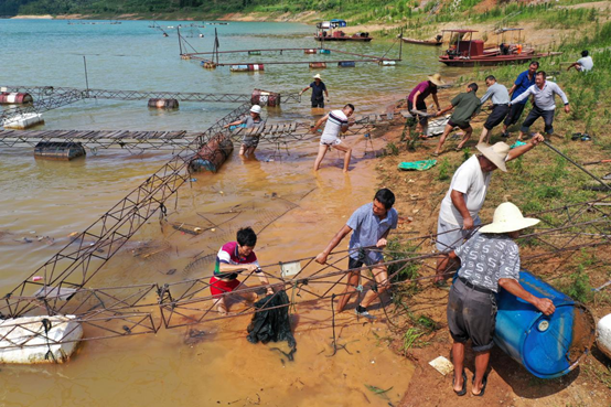 湖南省資興市加強(qiáng)跨部門(mén)協(xié)作,聯(lián)合實(shí)施東江湖網(wǎng)箱養(yǎng)殖退水上岸工程和清船、清網(wǎng)、清江、清庫(kù)退捕禁捕“四清四無(wú)”專項(xiàng)行動(dòng)。