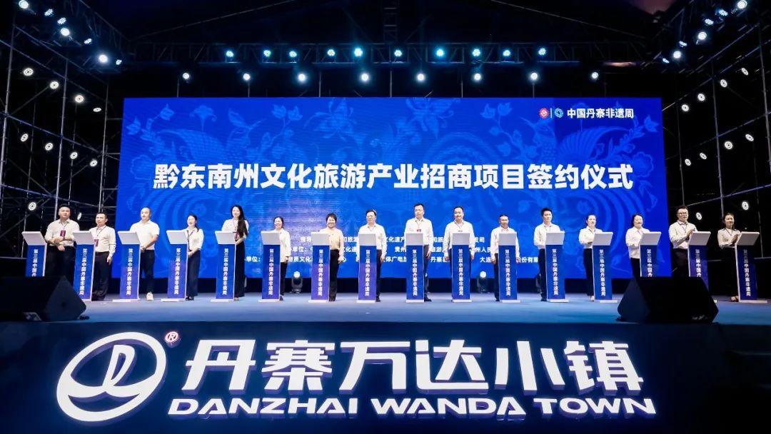 開(kāi)幕式上,雒樹(shù)剛、饒權(quán)、王曉峰、桑維亮、于杰、孫含欣、安九熊、齊界、龍濱共同啟動(dòng)“第三屆中國(guó)丹寨非遺周”。會(huì)上還舉行了黔東南州文化旅游產(chǎn)業(yè)招商項(xiàng)目簽約儀式,共簽約文化旅游招商項(xiàng)目16個(gè),協(xié)議總投資25.975億元。隨后,與會(huì)領(lǐng)導(dǎo)和嘉賓還欣賞了黔東南非遺項(xiàng)目展演,并參觀(guān)了各非遺巡展點(diǎn)。