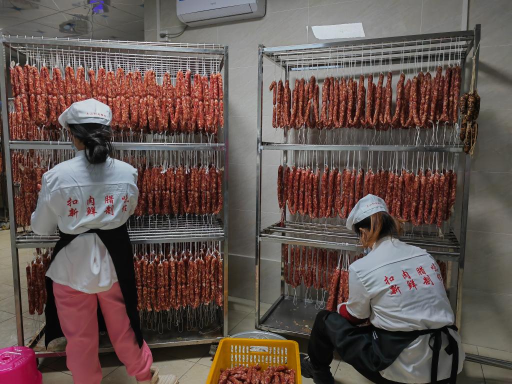 做好土特產(chǎn)文章,發(fā)展特色產(chǎn)業(yè)是實現(xiàn)鄉(xiāng)村振興的一條重要途徑。在陸川縣,當?shù)貒@國家地理標志產(chǎn)品陸川豬不斷助推村民致富增收。切割、生產(chǎn)、烘干、包裝……在位于陸川縣珊羅鎮(zhèn)大山村的玉林市浚淇食品有限公司,工人們正忙著生產(chǎn)和包裝臘腸?!澳觋P將至,臘肉、臘腸、扣肉的生產(chǎn)也迎來旺季?!惫矩撠熑肆簻颊f。