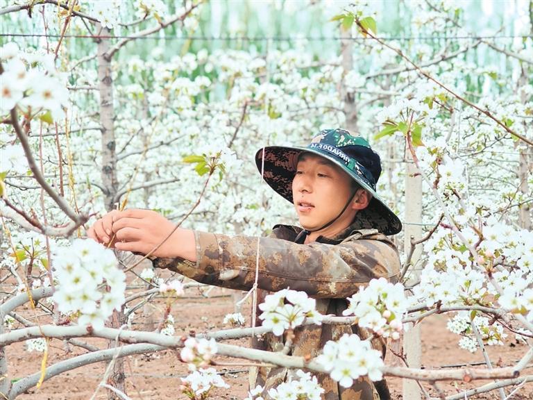 “我們曾嘗試給梨樹罩上保溫膜,但被大風(fēng)刮跑了。為了防倒春寒,我們專門購置了120臺(tái)防霜機(jī),1臺(tái)防霜機(jī)能有效覆蓋50畝梨園防霜凍?!迸?jì)軍介紹。