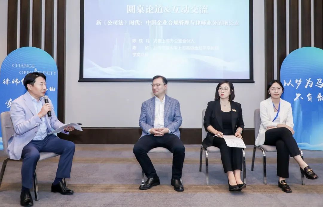 新《公司法》的實(shí)施為企業(yè)合規(guī)管理設(shè)置了很多新的課題,亦為律師展業(yè)提供了許多新的機(jī)會(huì)。為此,青年律師該如何“借勢(shì)”,化挑戰(zhàn)為機(jī)遇,實(shí)現(xiàn)個(gè)人成長(zhǎng)?圍繞此話題,陳欣教授、安理合伙人宇文鴻雁律師、青年律師代表劉豆律師給出了諸多有益建議。陳軼凡律師擔(dān)任本環(huán)節(jié)主持。