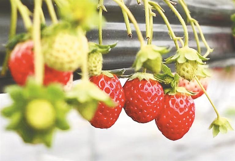在阜寧鎮(zhèn)建新村大嶺下屯還有7棟特別的溫室大棚,大棚內(nèi)一排排田埂整齊劃一,翠綠的葉子中間綴滿了水果黃瓜和草莓柿子,果實、綠葉、黃花交相輝映。為合理規(guī)劃大棚空間,溫室大棚采用“錯茬種植、一棚多產(chǎn)”的發(fā)展模式,大棚每年可種植兩到三茬蔬菜,草莓、柿子、豆角、辣椒、菠菜、黃瓜等果蔬輪番種植,提高大棚的利用率,實現(xiàn)一棚多用、一地多季、一年多收。之后將綜合考量市場需求,采取“種植+采摘+休閑”的模式融合發(fā)展,以打造綠色、有機(jī)蔬果為目標(biāo),不斷提升蔬果品質(zhì)和知名度。