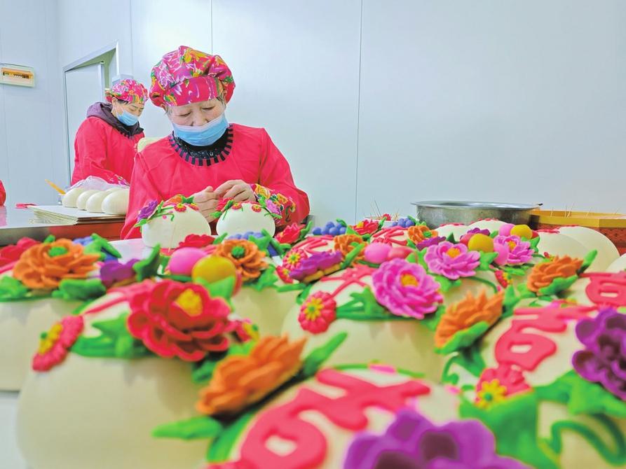 聞喜北垣花饃藝人正在進行創(chuàng)作