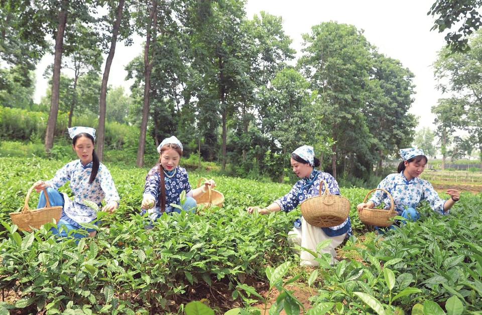 夏縣泗交鎮(zhèn)王家河村村民在茶園采摘新茶