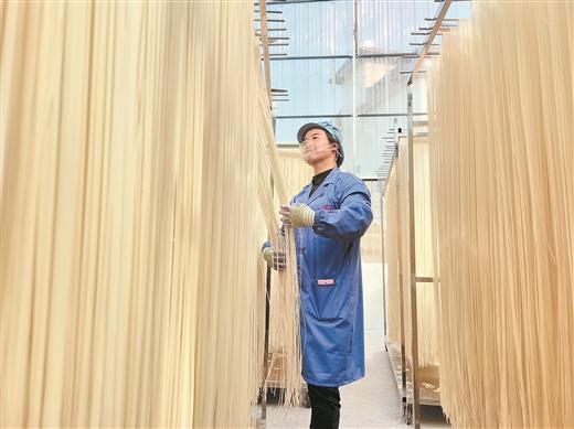 面條產(chǎn)業(yè)的蓬勃發(fā)展引發(fā)“多米諾骨牌效應(yīng)”,吸引了億云飾品、鑫鑫鞭炮廠、灌陽都龐嶺合作社等企業(yè)入駐東陽村,形成了以面條生產(chǎn)、林下作物和飾品加工為主的村級(jí)產(chǎn)業(yè)園,每年總產(chǎn)值超過600萬元,為村民長期提供150多個(gè)家門口就業(yè)崗位。
