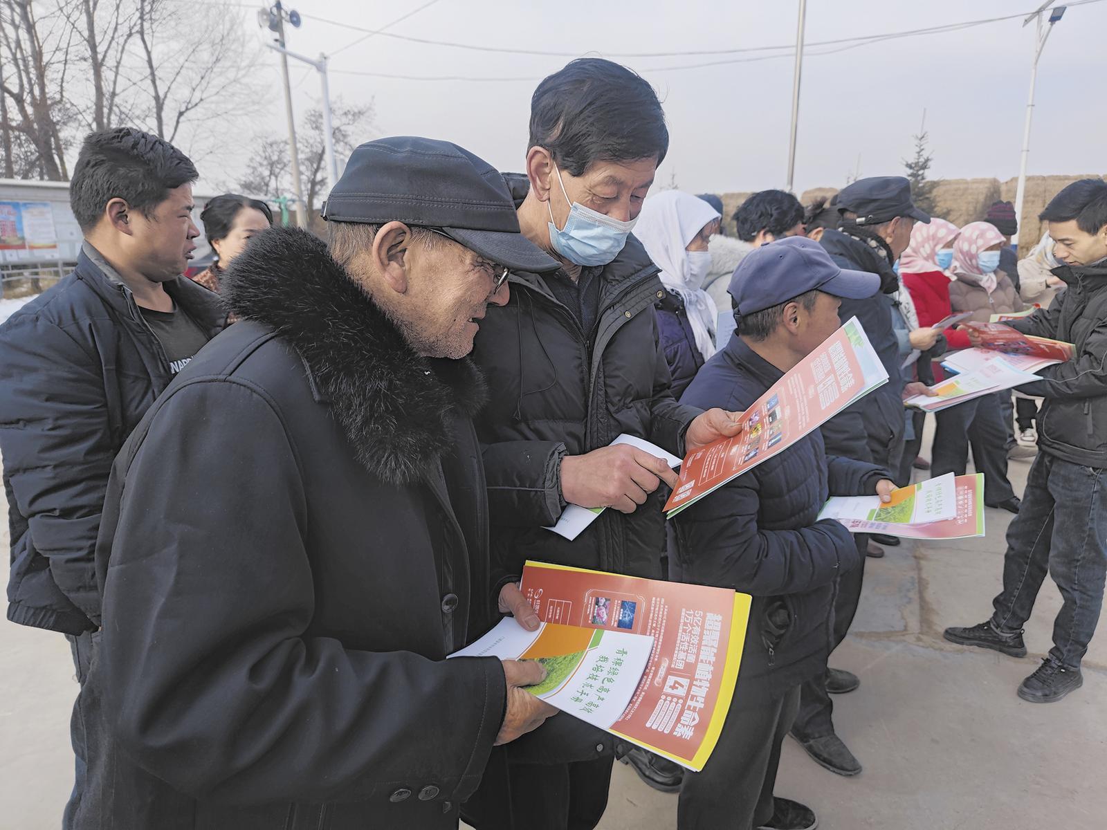 “鄉(xiāng)親們注意了!為貫徹落實好中央一號文件精神,鼓勵大家種好地,我們村的村民和家庭農(nóng)場搞生產(chǎn)的,只要符合條件都能申請農(nóng)機補貼!”2月21日,在青海省海北藏族自治州門源回族自治縣北山鄉(xiāng)大泉村,以“兩講四促兩整治”為主題的宣講現(xiàn)場,縣農(nóng)牧水利綜合服務(wù)中心工作人員李維勝,邊把門源縣年農(nóng)機購置補貼材料發(fā)到村民手中,邊向村民詳細介紹。