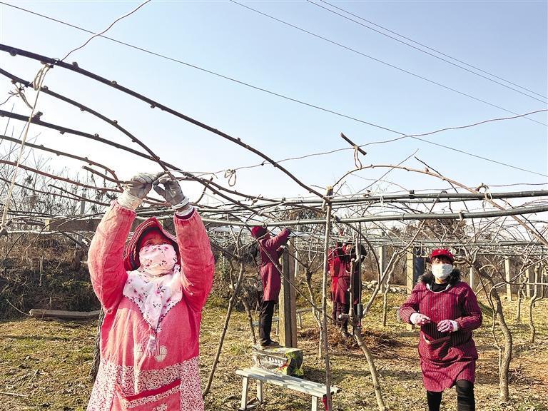 2月21日,陜西省寶雞市眉縣湯峪鎮(zhèn)樓觀塬村村民杜列讓和工友們在獼猴桃“四改五提升”示范園里忙碌著。