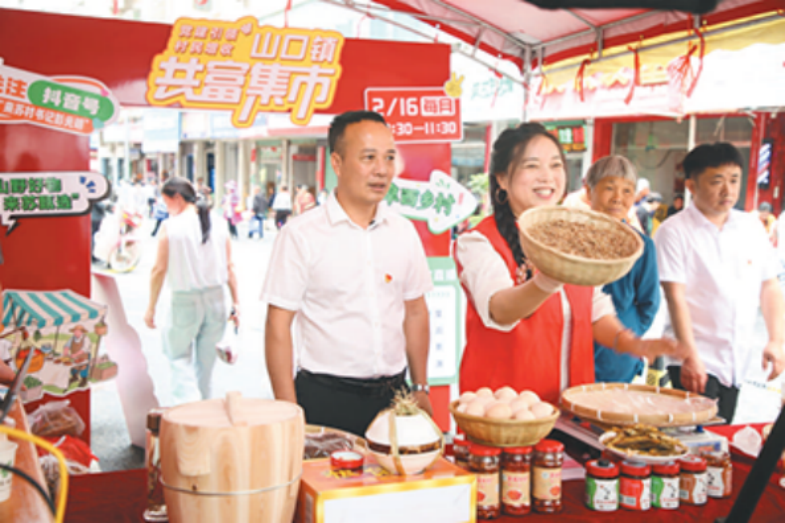 九江市修水縣山口鎮(zhèn)來蘇村后備力量在“共富市集”,參加助農(nóng)直播現(xiàn)場(chǎng)比拼。
