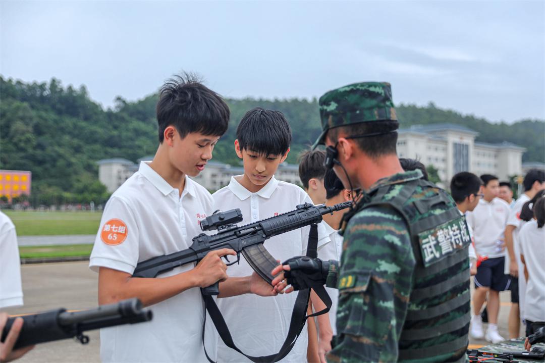 “為讓港澳青少年親身體驗軍營訓(xùn)練,增進(jìn)對全民國防教育的認(rèn)識與認(rèn)同,我們展示了猛士突擊車、榴彈發(fā)射器、無人機(jī)、金屬探雷器等5大類60余種裝備?!蔽渚瘡V東總隊領(lǐng)導(dǎo)賴云飛介紹,他們著眼武警部隊特色,安排擒敵、攀登、射擊等課目演示,并邀請港澳青少年體驗?zāi)M射擊。
