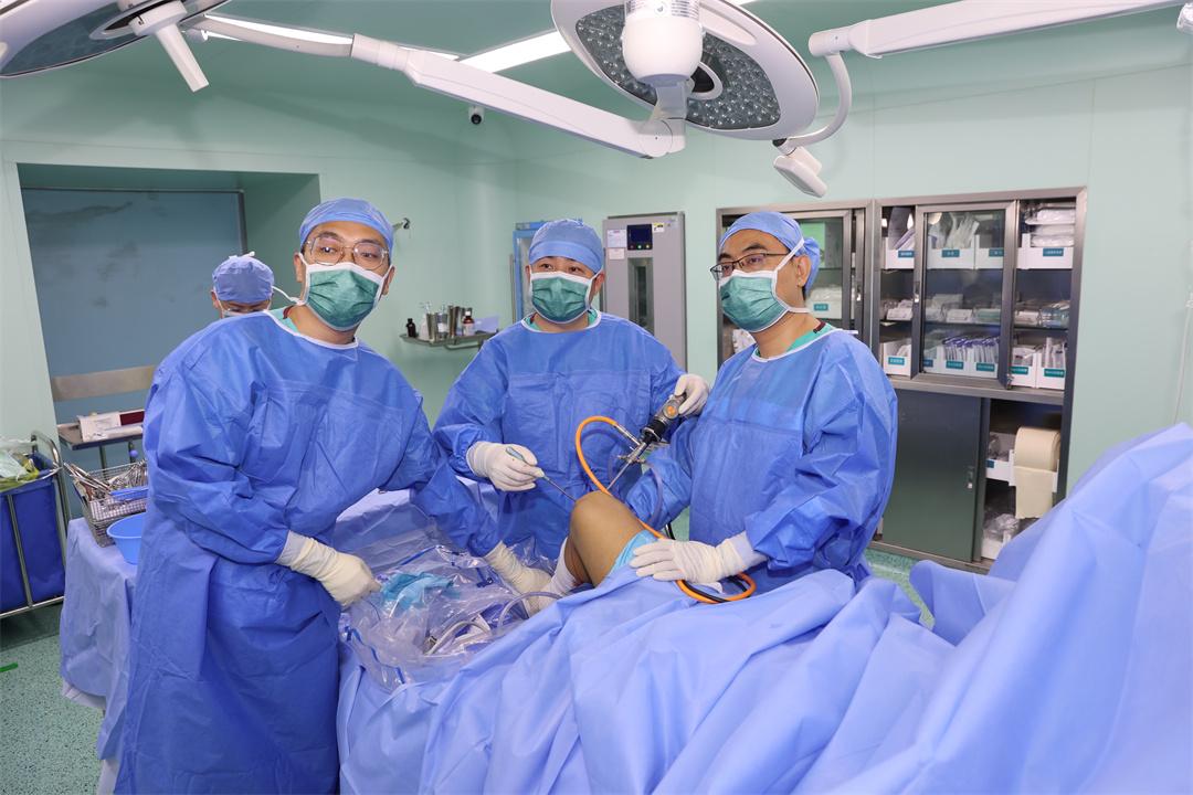 為盡量降低手術(shù)創(chuàng)傷,進一步提高手術(shù)療效,讓小向更快康復(fù)返回訓(xùn)練場,李海鵬制定新手術(shù)方案。手術(shù)開始后,李海鵬操縱關(guān)節(jié)鏡建立入路,運用止點縫合修復(fù)的方法,在一側(cè)攝像頭的清晰展示下精準找到受傷韌帶。探鉤檢查韌帶具體受傷情況,用高強度縫線縫合受傷韌帶,縫線尾端通過縫合錨釘固定到股骨止點處,發(fā)現(xiàn)傷處恢復(fù)良好張力。與傳統(tǒng)手術(shù)相比,具有時間短、痛苦小、恢復(fù)快的明顯優(yōu)勢,術(shù)后3天患者順利出院。