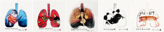 在舒勇“每日一畫”創(chuàng)造的眾多意象中,《同呼吸共命運(yùn)》系列大概是最簡單至極的表達(dá)。作品運(yùn)用“肺”的基本形態(tài)作為背景容器,將世界各國著名藝術(shù)家作品及思想融進(jìn)了這個基本形態(tài)的肺容器中。以此來表達(dá),我們雖然生活在不同的地方,來自不同的國家,擁有不同的膚色、不同的文化,但是我們有同樣的肺,呼吸在同一片藍(lán)天下。