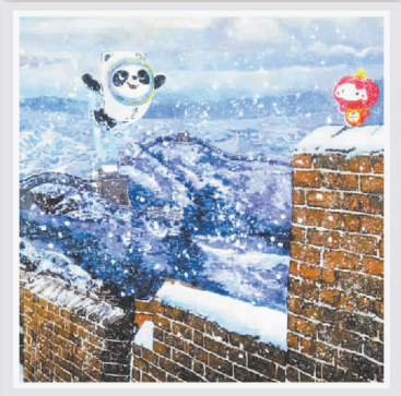 有人困于生活的瑣碎庸庸度日,也有人不甘平庸,在彷徨中奮力向前。舒勇在《一起向未來》系列作品中為我們開辟了一個逃離單調(diào)現(xiàn)實(shí)的夢幻世界,簡單樸實(shí)的平面化特征,可愛的冰墩墩和雪容融形象高度概括、簡潔又形神兼?zhèn)?,富有形式感、秩序感、韻律感,具有?qiáng)烈的裝飾性和形式美感,他對色彩的使用結(jié)合了綜合主義風(fēng)格,將我們卷入另一個時空,這就是藝術(shù)想象力的魅力所在。透過絢爛豐富的畫作,我們看到的是舒勇飽滿而熱烈的心靈,是最純粹的情感流淌,是源源不絕的熱切期待和渴望。
