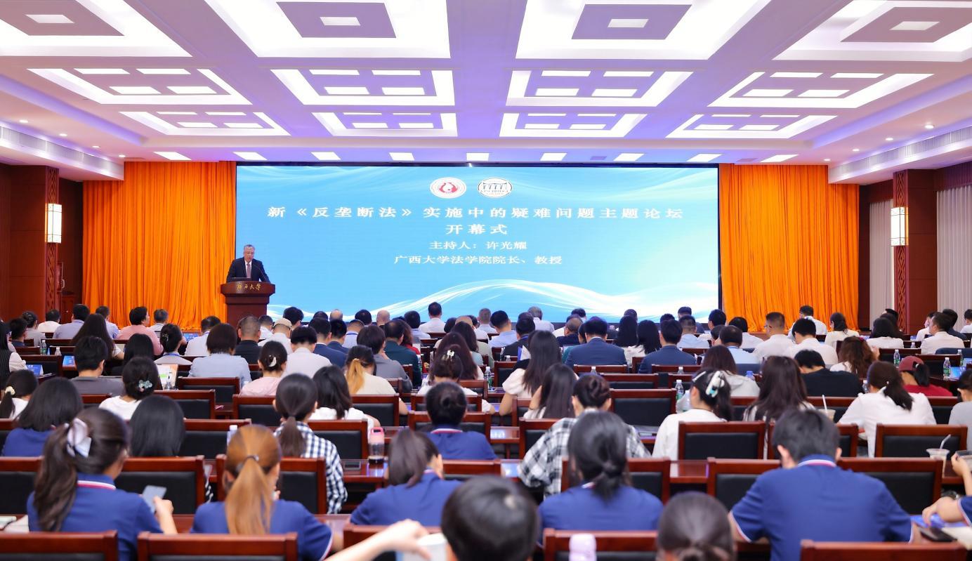 7月6日,由廣西大學(xué)主辦的“新反壟斷法實(shí)施中的疑難問題”學(xué)術(shù)研討會(huì)在南寧舉行。來自中國(guó)政法大學(xué)、上海交通大學(xué)、武漢大學(xué)、對(duì)外經(jīng)濟(jì)貿(mào)易大學(xué)等20多所高校、廣東省市場(chǎng)監(jiān)督管理局等實(shí)務(wù)部門的代表,以及阿里巴巴、抖音、華為、騰訊等企業(yè)的法律事務(wù)負(fù)責(zé)人等共百余人參會(huì),聚焦新修訂的反壟斷法實(shí)施中的重點(diǎn)難點(diǎn)問題展開深入研討,共同把脈數(shù)字經(jīng)濟(jì)時(shí)代反壟斷治理的前沿議題。