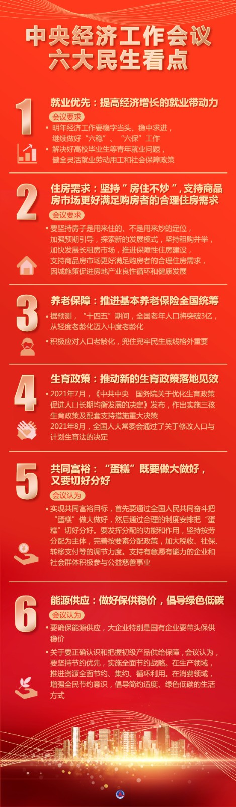 “社會政策要兜住兜牢民生底線”“要統(tǒng)籌推進(jìn)經(jīng)濟(jì)發(fā)展和民生保障”……圍繞人民群眾關(guān)心的就業(yè)、住房、養(yǎng)老、生育等民生問題,12月8日至10日在京舉行的中央經(jīng)濟(jì)工作會議釋放一系列重要信息。