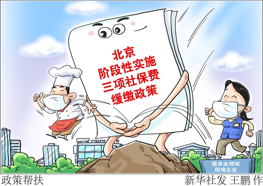 為幫助服務(wù)業(yè)領(lǐng)域困難企業(yè)渡過難關(guān)、恢復(fù)發(fā)展,北京市人力資源和社會(huì)保障局與國家稅務(wù)總局北京市稅務(wù)局、北京市財(cái)政局等九部門5月9日聯(lián)合發(fā)布通告,對(duì)在北京市參保繳費(fèi),屬于餐飲、零售、旅游、民航、公路鐵路運(yùn)輸行業(yè)的企業(yè),階段性實(shí)施企業(yè)職工基本養(yǎng)老保險(xiǎn)、失業(yè)保險(xiǎn)、工傷保險(xiǎn)三項(xiàng)社保費(fèi)緩繳政策。