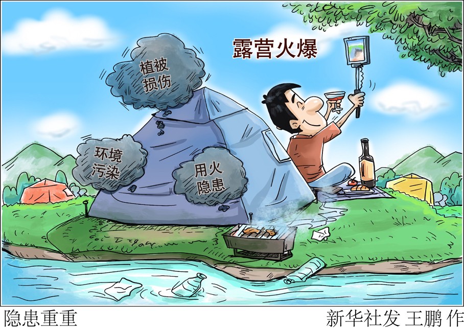 “新華視點(diǎn)”記者調(diào)查發(fā)現(xiàn),部分露營者選擇不具備基礎(chǔ)條件的地點(diǎn)露營,由于缺乏專業(yè)的規(guī)范引導(dǎo),產(chǎn)生了植被損傷、環(huán)境污染、用火隱患等問題。