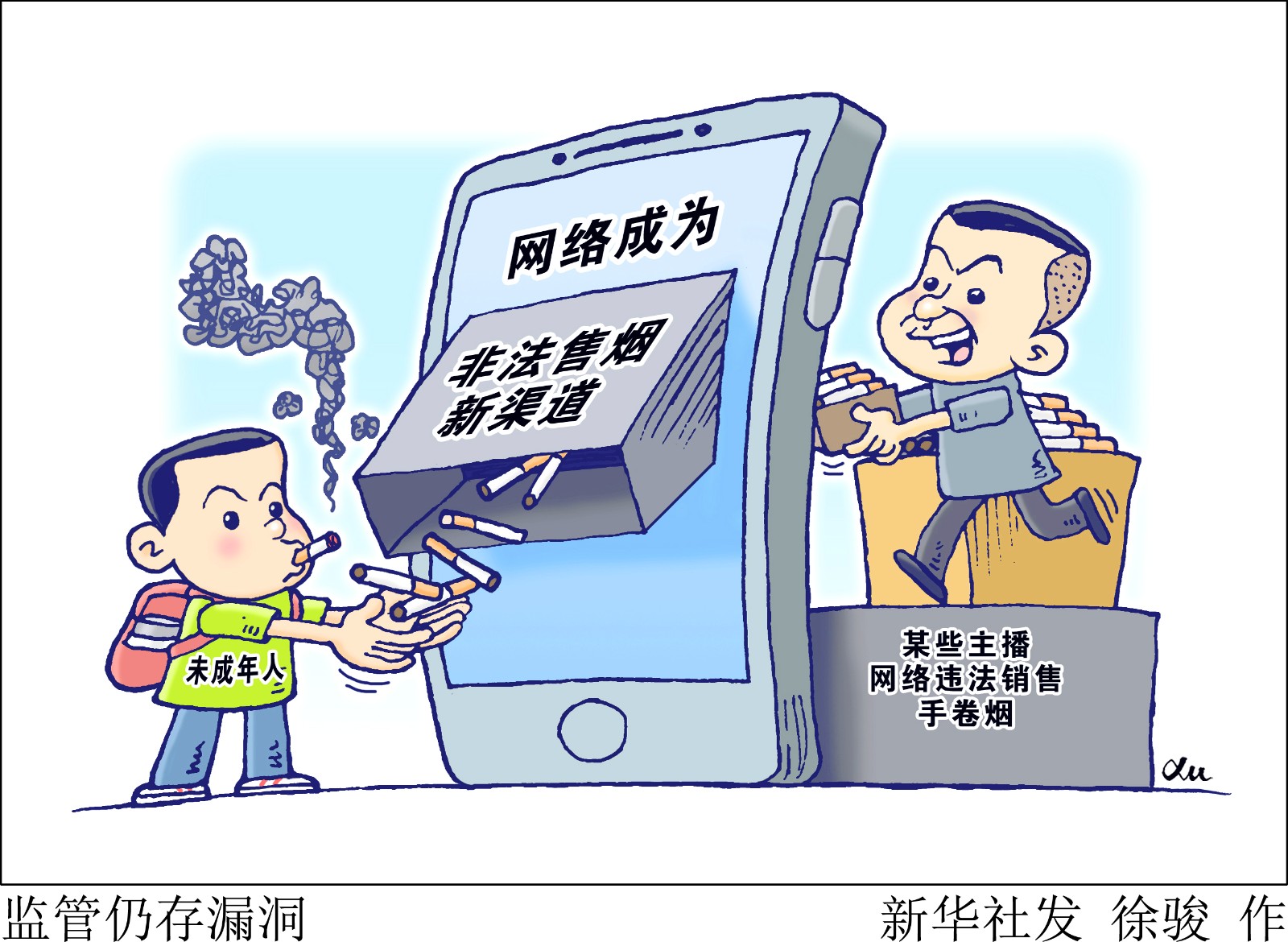 5月31日是世界無煙日。數(shù)據(jù)顯示,我國吸煙人數(shù)超3億,每年因吸煙死亡人數(shù)超100萬?!靶氯A視點”記者調(diào)查發(fā)現(xiàn),一些網(wǎng)絡平臺主播以各種暗號為掩飾,直播銷售各種款式的手卷煙,生意十分火爆。未經(jīng)許可在網(wǎng)上賣煙,不但違反了相關法律,也不利于未成年人保護。