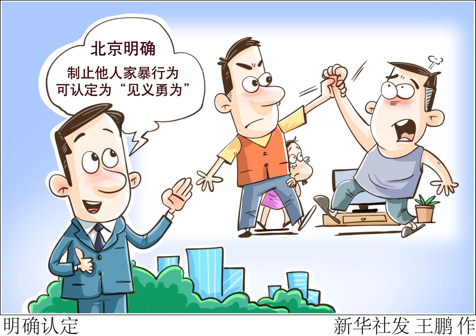 在北京市委社會工委市民政局6月10日舉行的新聞發(fā)布會上,北京市委社會工委市民政局二級巡視員張青之介紹,北京正式啟動第四屆北京市見義勇為宣傳月暨第十三屆首都見義勇為好市民社會化評選活動。制止他人的家暴行為等情形,符合確認條件的,可以認定為“見義勇為”。