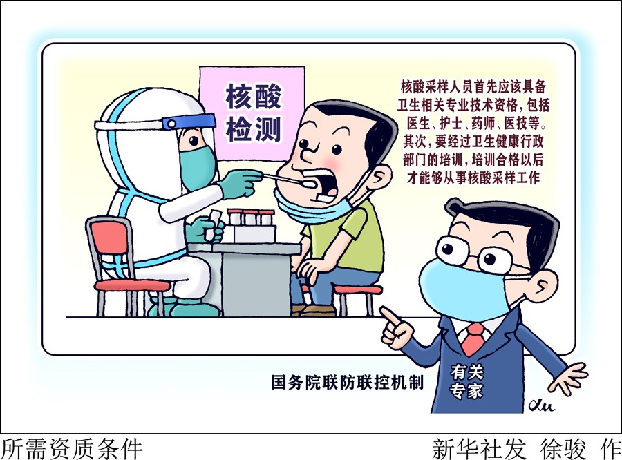 國(guó)家衛(wèi)生健康委醫(yī)政醫(yī)管局監(jiān)察專員郭燕紅介紹,核酸采樣人員首先應(yīng)該具備衛(wèi)生相關(guān)專業(yè)技術(shù)資格,包括醫(yī)生、護(hù)士、藥師、醫(yī)技等。其次,要經(jīng)過(guò)衛(wèi)生健康行政部門的培訓(xùn),培訓(xùn)合格以后才能夠從事核酸采樣工作。