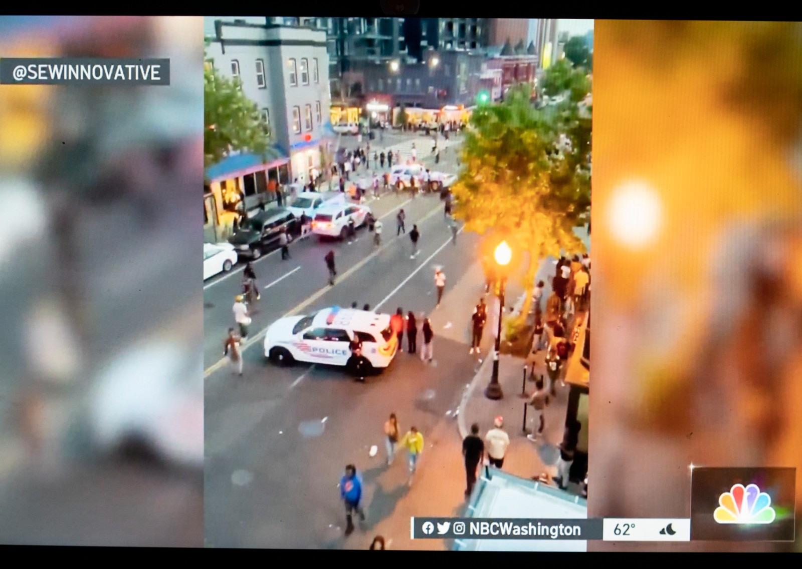 這張6月19日在美國(guó)阿靈頓拍攝的電腦屏幕畫面顯示美國(guó)華盛頓的槍擊事件現(xiàn)場(chǎng)。