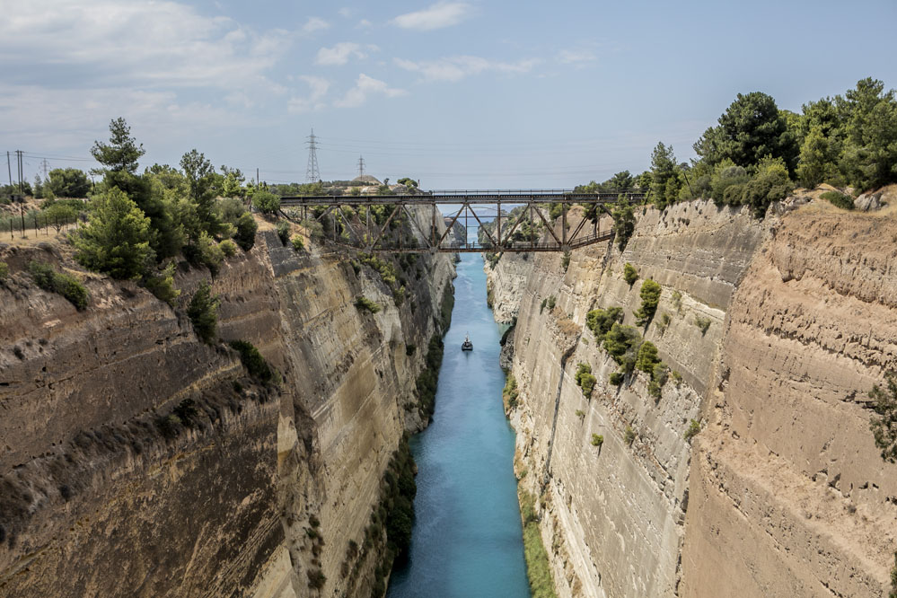 經(jīng)過18個月的修葺,科林斯運河近日恢復開放??屏炙惯\河位于希臘的科林斯地峽,于1881年啟動建設,1893年竣工,全長約6.3公里,連通愛琴海和伊奧尼亞海。