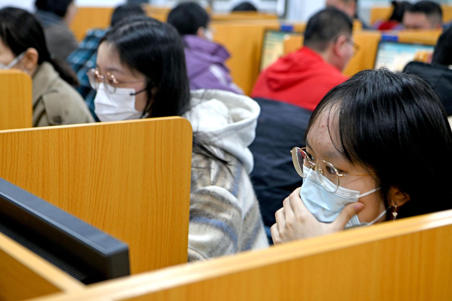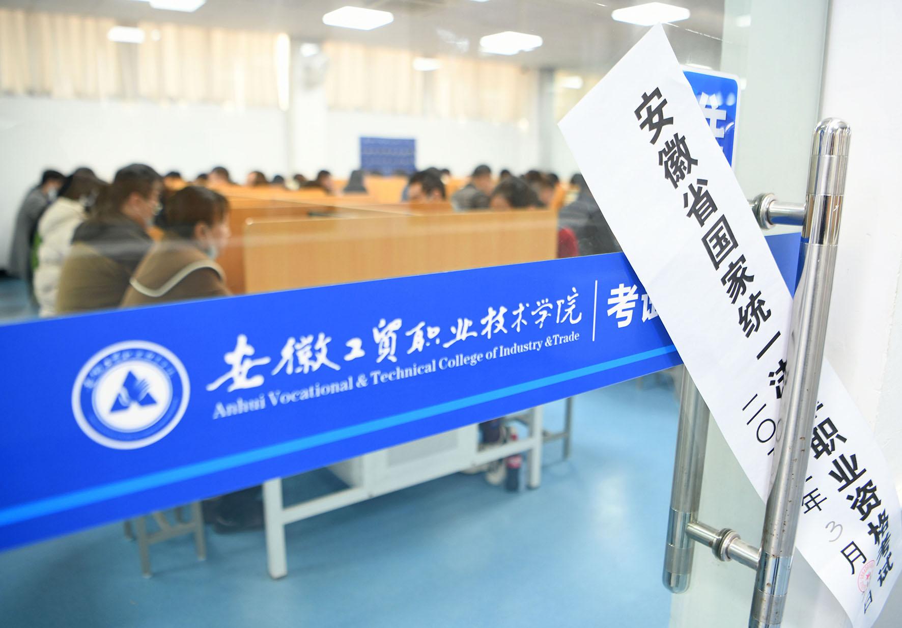 3月26日,安徽省淮南市考生在安徽工貿(mào)職業(yè)技術(shù)學(xué)院考點參加2022年度國家統(tǒng)一法律職業(yè)資格考試主觀題考試。當(dāng)日,2022年度國家統(tǒng)一法律職業(yè)資格考試主觀題考試開考。