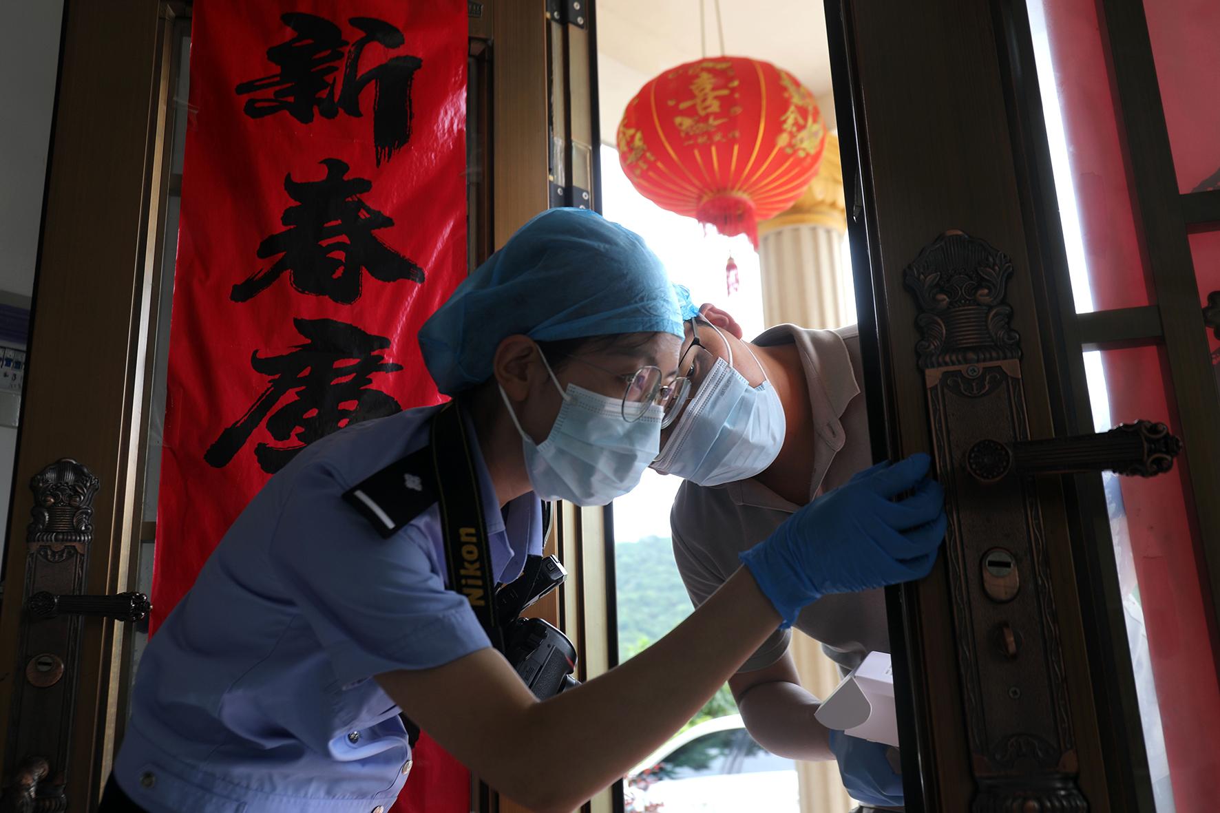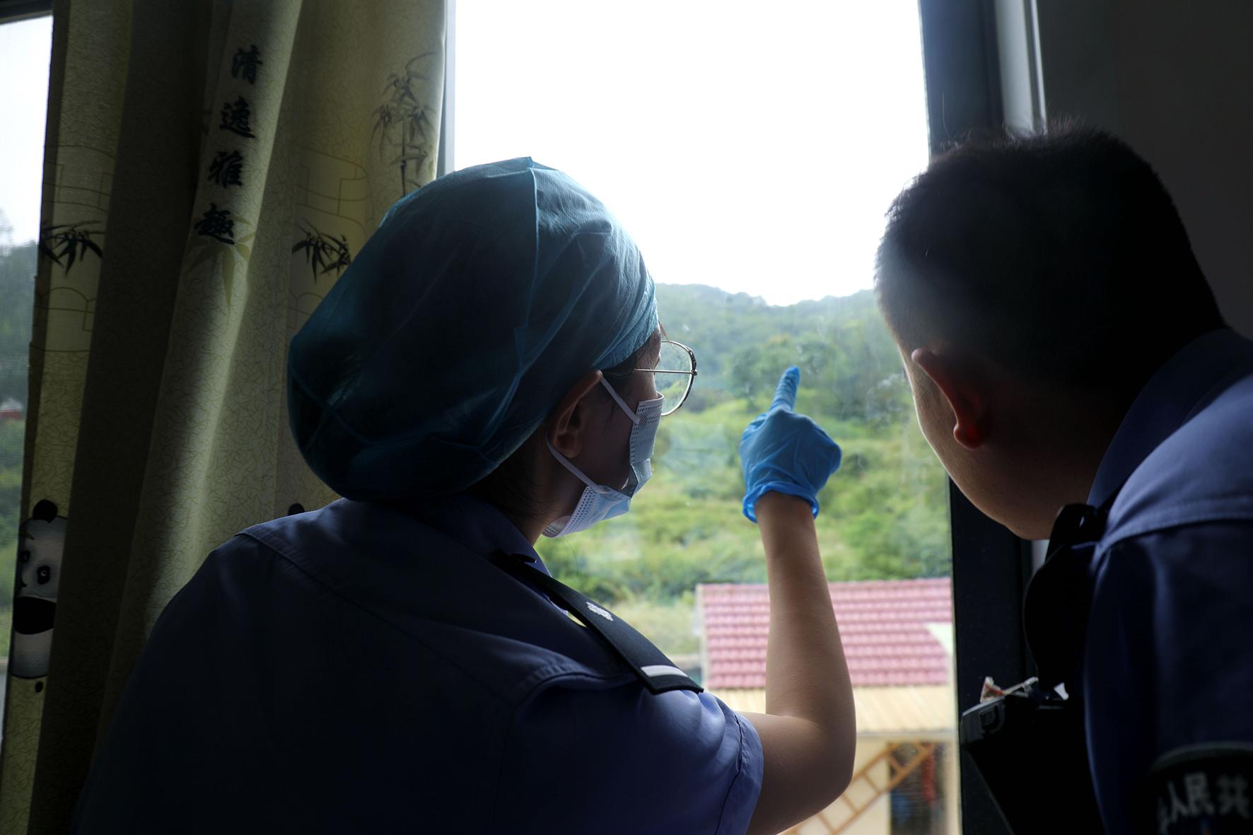 圖五、現(xiàn)場勘查結(jié)束,民警終于可以摘下頭套歇會(huì)兒。