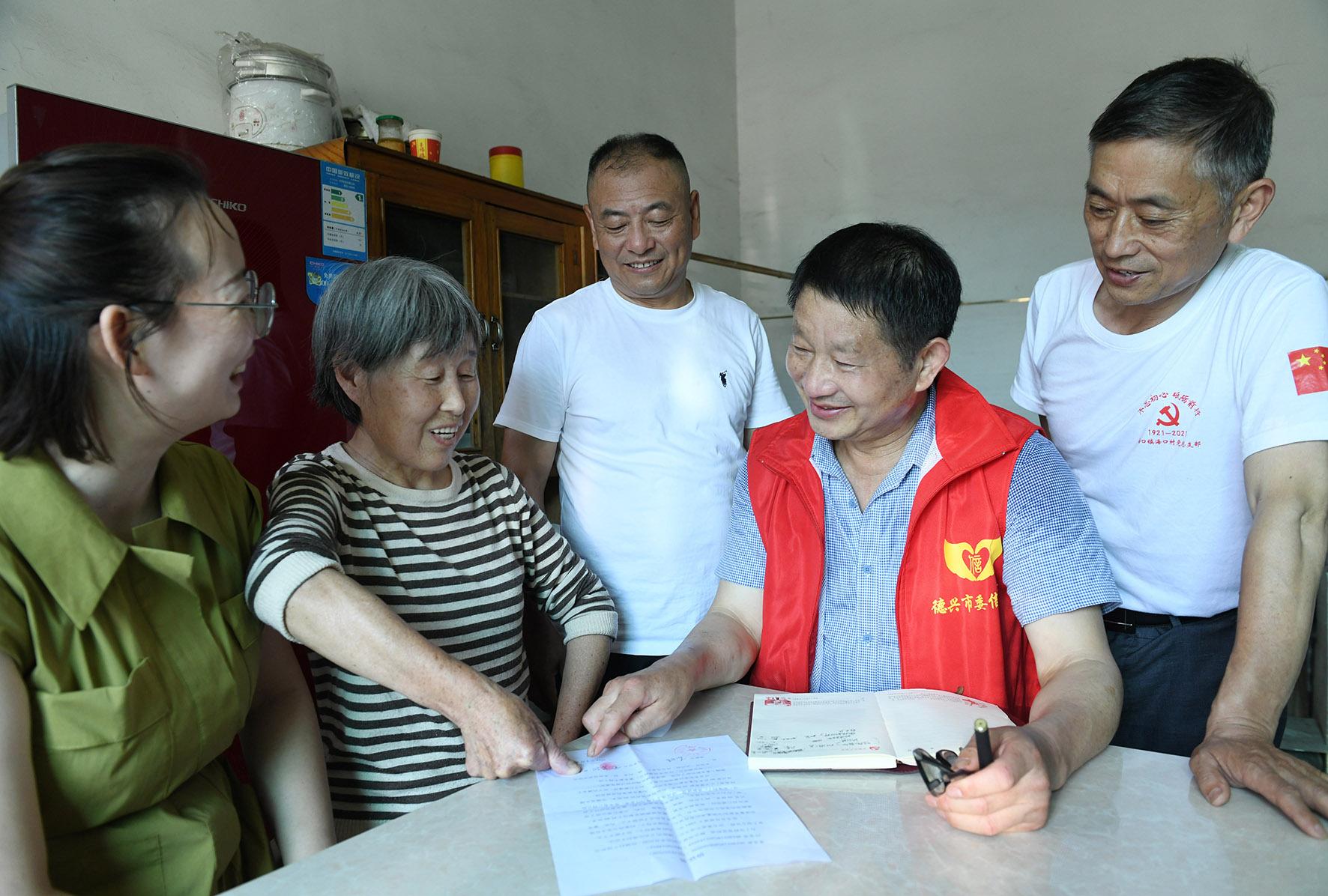 7月4日,江西省德興市海口鎮(zhèn)退休干部、全國(guó)模范人民調(diào)解員應(yīng)火根在海口村成功調(diào)解一起鄰里房屋地基糾紛,雙方握手言和并簽訂和解協(xié)議。