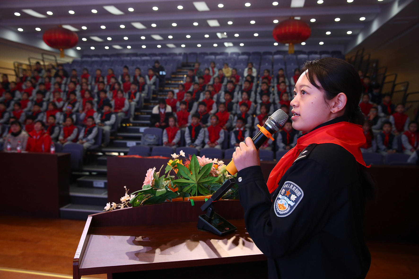 2月26日,山東省濟南市公安局市中區(qū)分局大觀園派出所民警來到經五路小學,給學生們上安全課。
