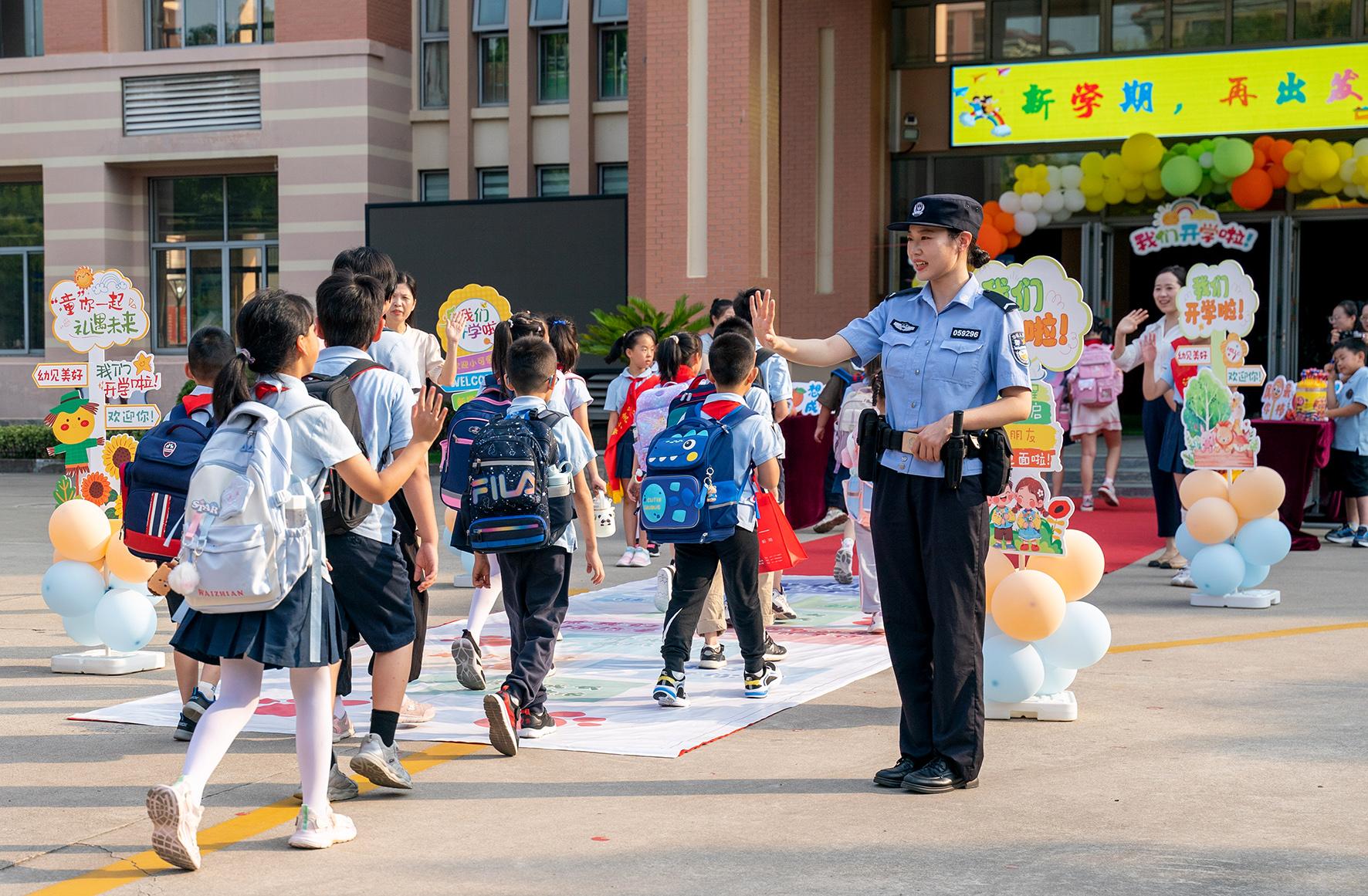 9月2日,安徽省合肥市公安局蜀山分局五里墩派出所社區(qū)民警來到頤和佳苑小學(xué),為師生們站好平安“護(hù)學(xué)崗”。