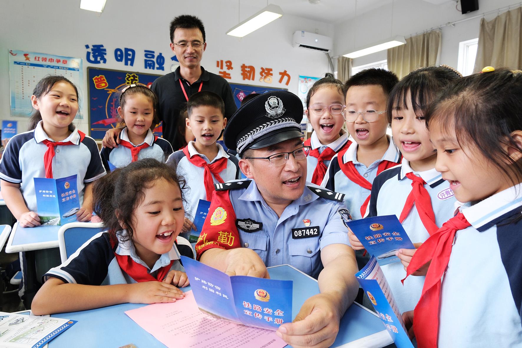 9月2日,杭州公安處長興站派出所民警來到長興太湖街道中心小學(xué)開展愛路護(hù)路普法宣傳活動。