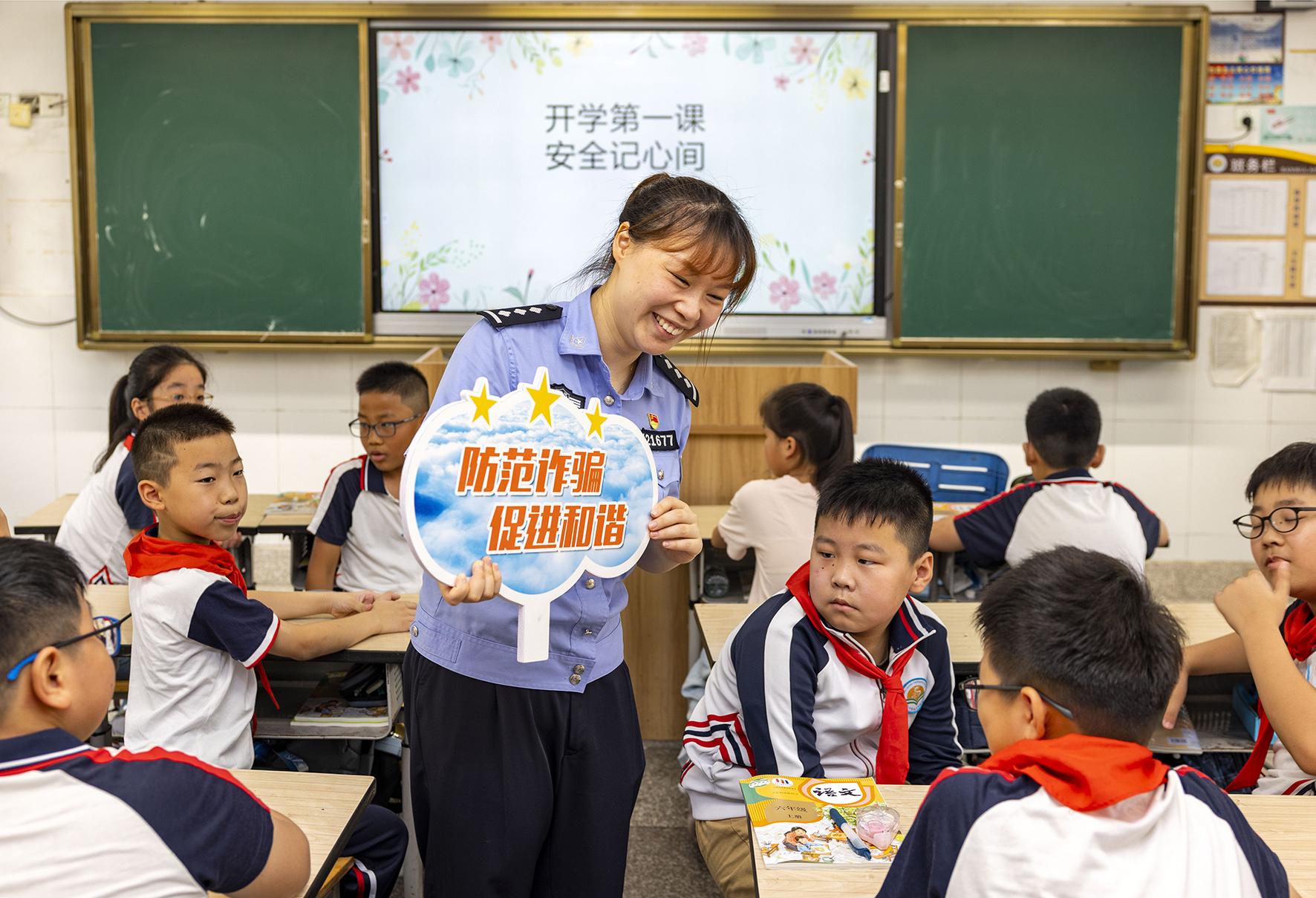 9月2日,山東省濟(jì)南市公安局市中區(qū)分局組織民警走進(jìn)轄區(qū)學(xué)校給學(xué)生普及安全知識,上好開學(xué)“第一課”。