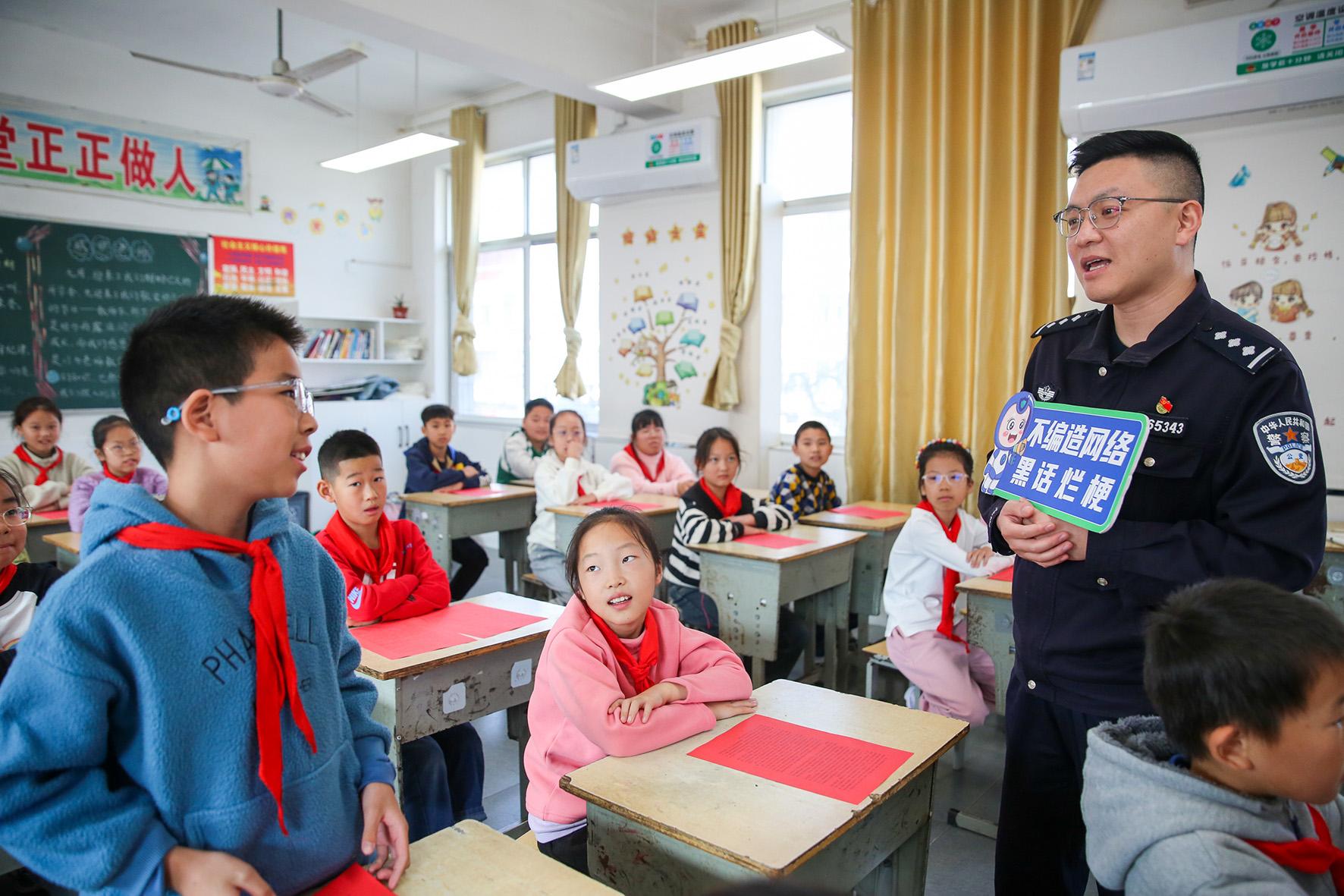 11月12日,由江蘇省如皋市委網(wǎng)信辦、教育局、公安局共同開展的“清朗·規(guī)范網(wǎng)絡(luò)語言文字使用”專項(xiàng)教育課走進(jìn)下原鎮(zhèn)花園小學(xué)。