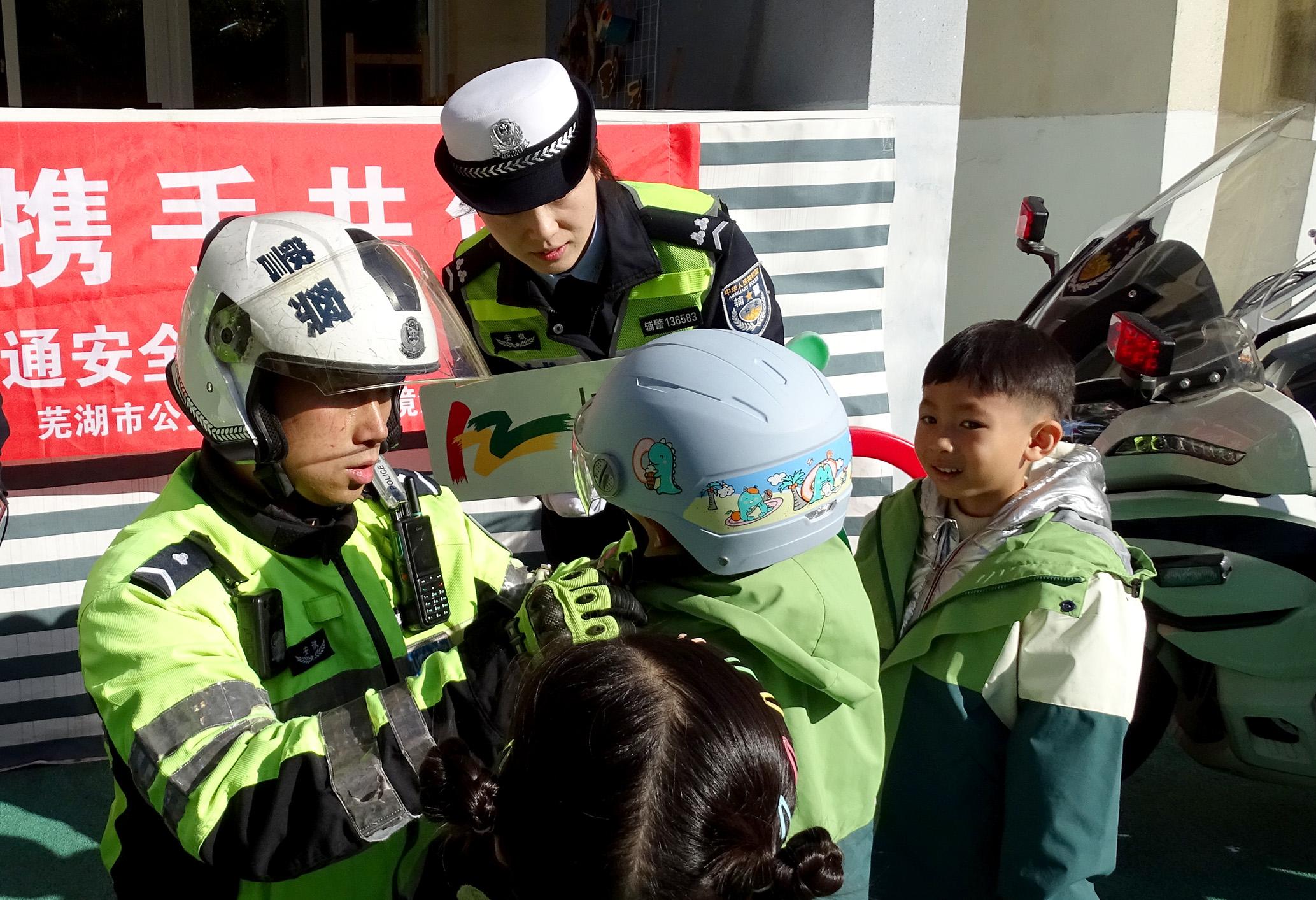 12月1日,安徽省蕪湖市公安局交警支隊弋江大隊民警走進安徽商貿職業(yè)技術學院,開展“文明交通 攜手共創(chuàng)”主題宣傳活動。