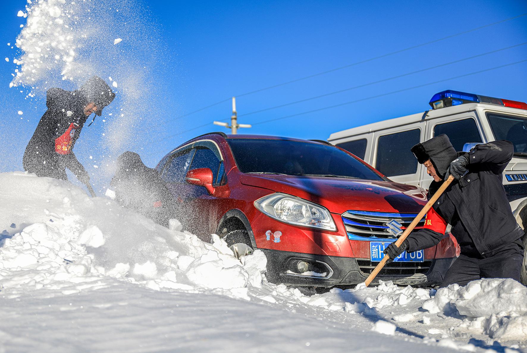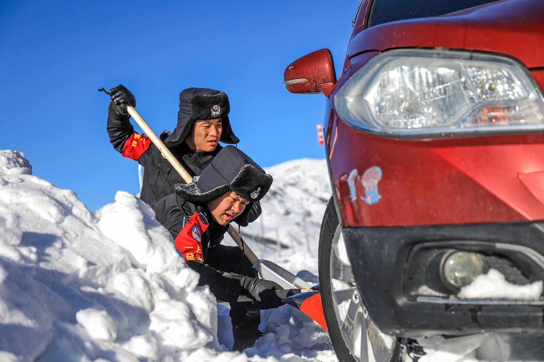 12月5日12時(shí)許,新疆出入境邊防檢查總站阿勒泰邊境管理支隊(duì)庫衛(wèi)邊境派出所接到群眾求助稱車輛因積雪滑下路基被困。接到求助警情后,巡邏警力第一時(shí)間趕赴現(xiàn)場,通過清挖積雪和警車牽引的方式,成功將被困人員和車輛救出。