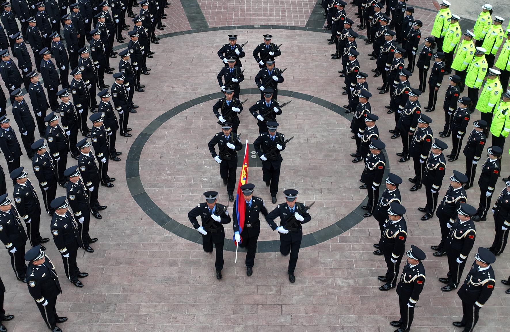 1月10日,為熱烈慶祝第五個(gè)中國(guó)人民警察節(jié),上海市公安局崇明分局舉行升警旗、重溫入警誓詞活動(dòng)。
