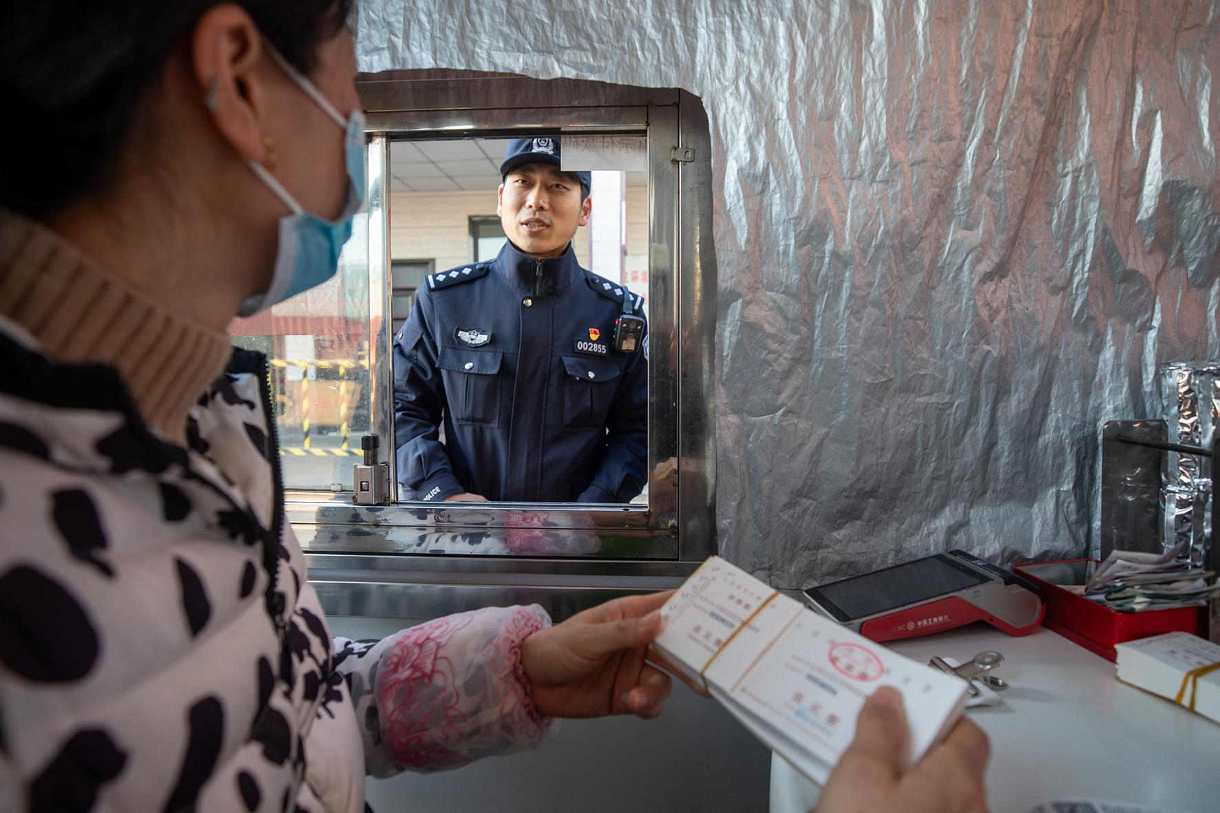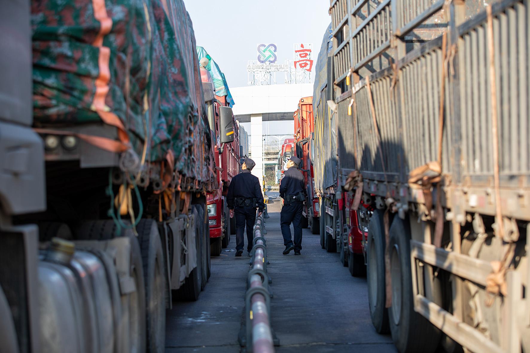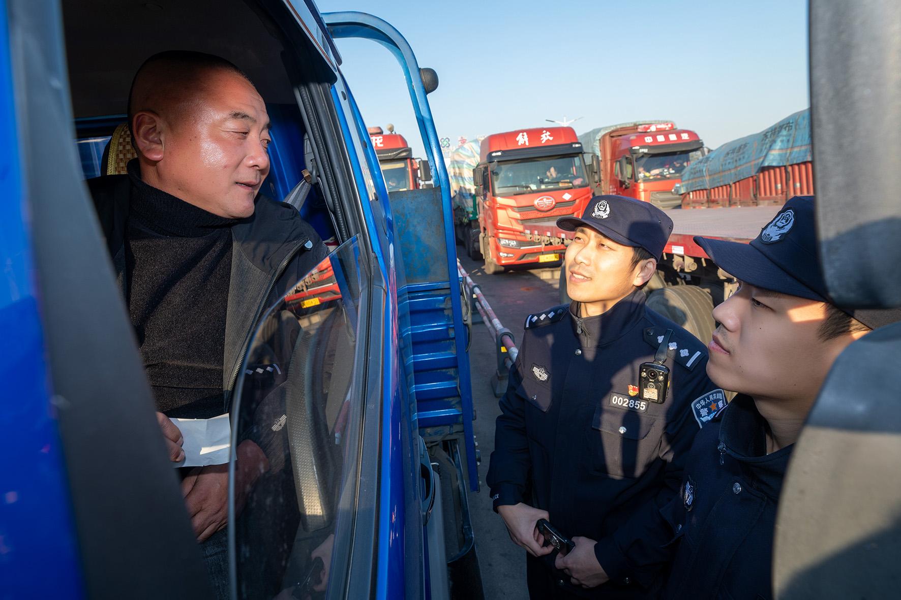 民警為春運(yùn)貨車司機(jī)提供便民服務(wù)。