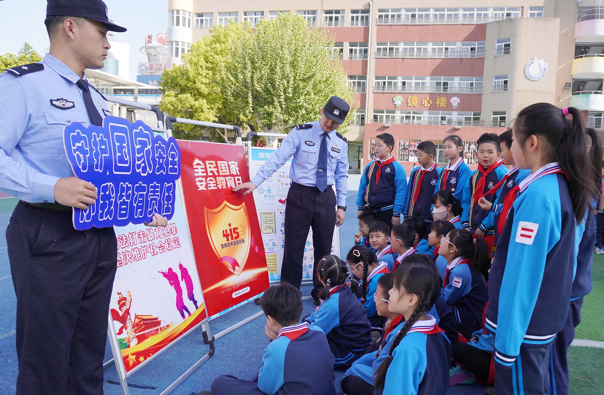 4月14日,江蘇省徐州市公安局鼓樓分局巡特警大隊(duì)聯(lián)合環(huán)城派出所在徐州市鼓樓小學(xué)開(kāi)展全民國(guó)家安全教育日進(jìn)校園活動(dòng)。