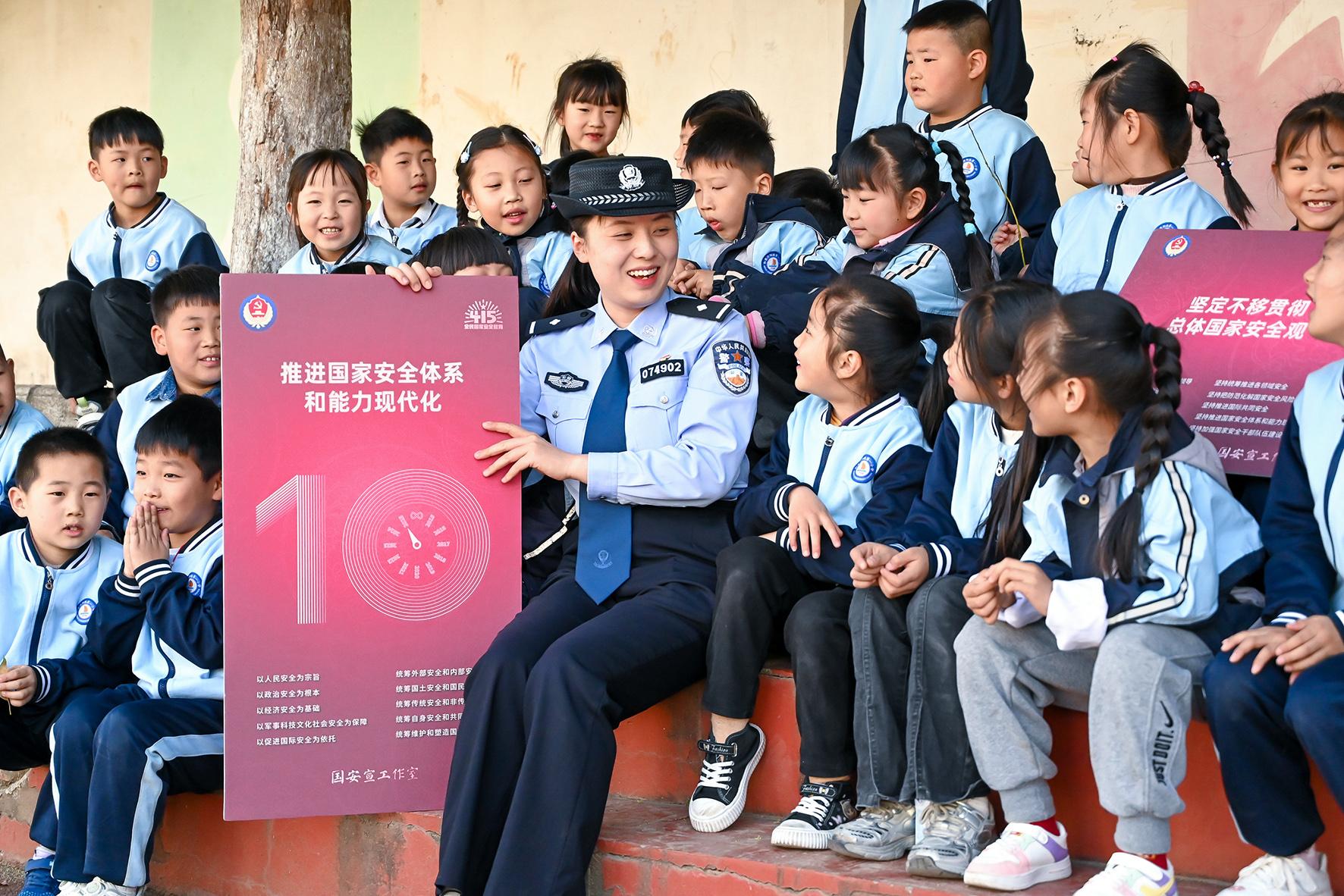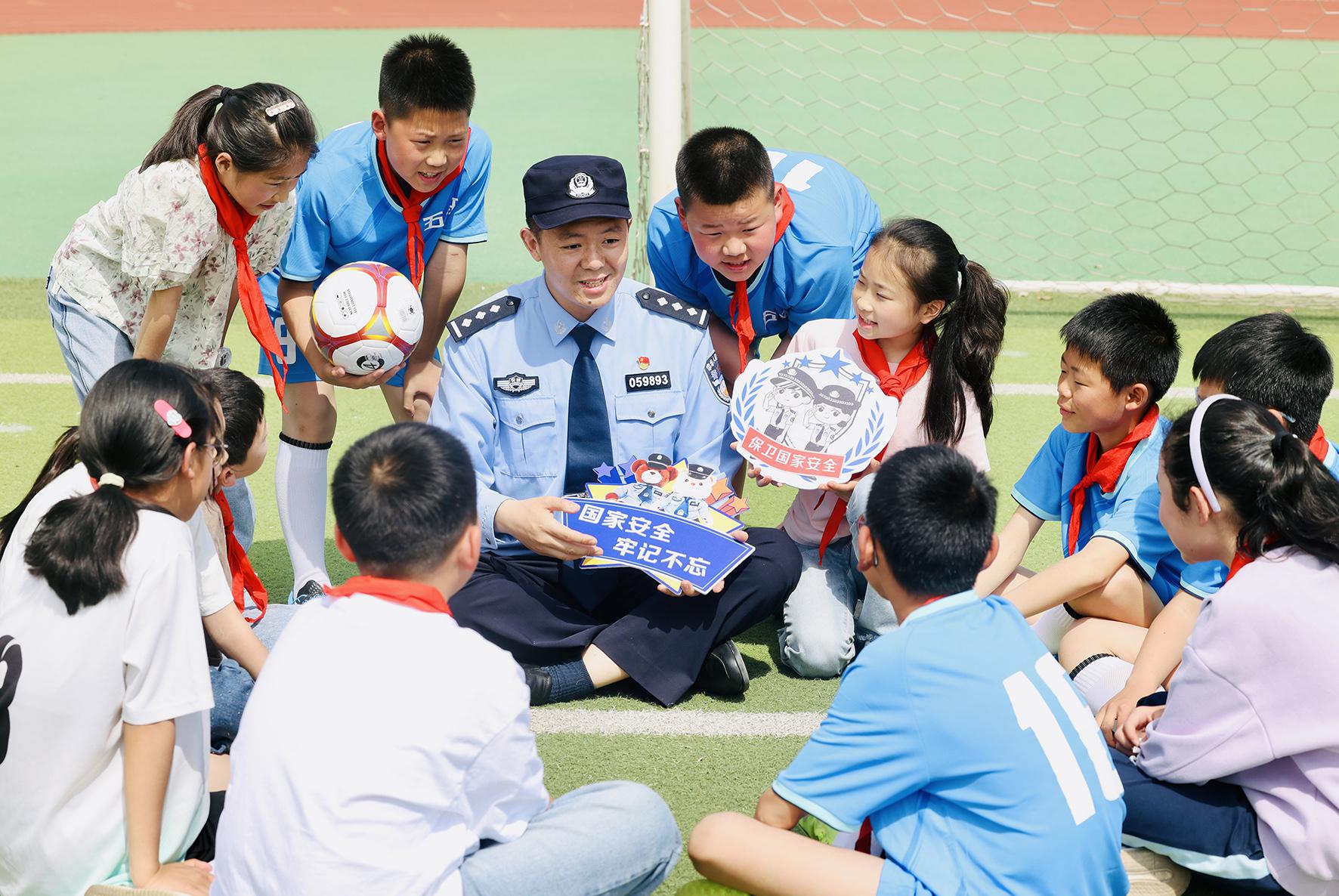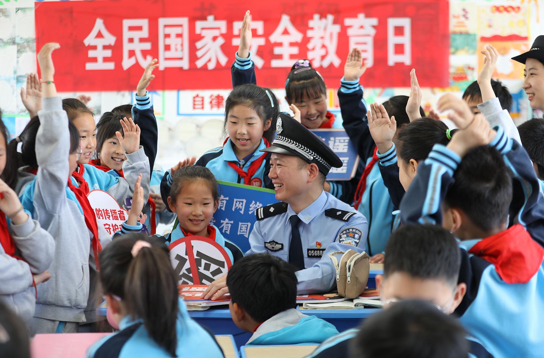 4月14日,山東省棗莊市公安局臺(tái)兒莊分局民警走進(jìn)明遠(yuǎn)實(shí)驗(yàn)小學(xué)開(kāi)展全民國(guó)家安全教育日進(jìn)校園活動(dòng)。