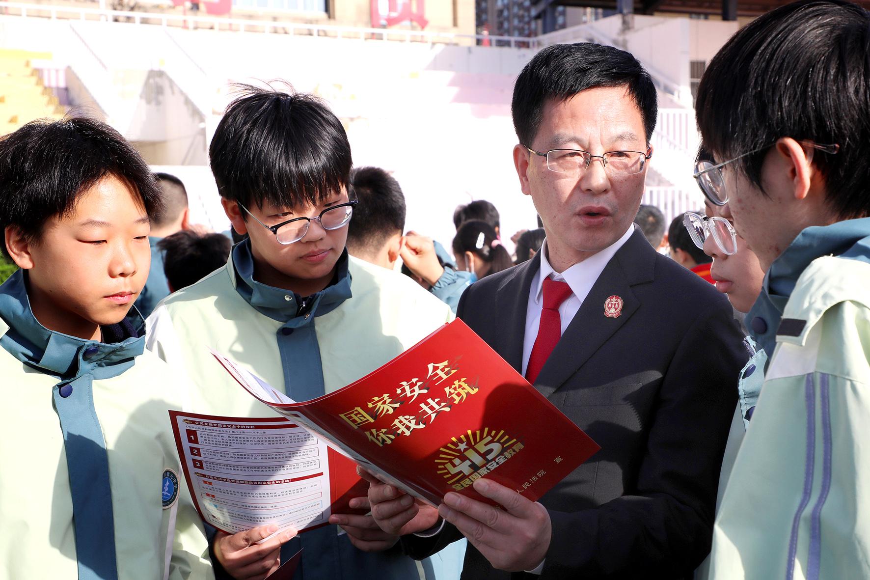 4月14日,在第十個(gè)全民國(guó)家安全教育日到來(lái)之際,山東省棗莊市市中區(qū)人民法院組織法官走進(jìn)東湖小學(xué),通過(guò)多種方式向?qū)W生普及國(guó)家安全相關(guān)法律法規(guī)知識(shí),增強(qiáng)學(xué)生們對(duì)總體國(guó)家安全觀的認(rèn)識(shí),共筑國(guó)家安全防線(xiàn)。