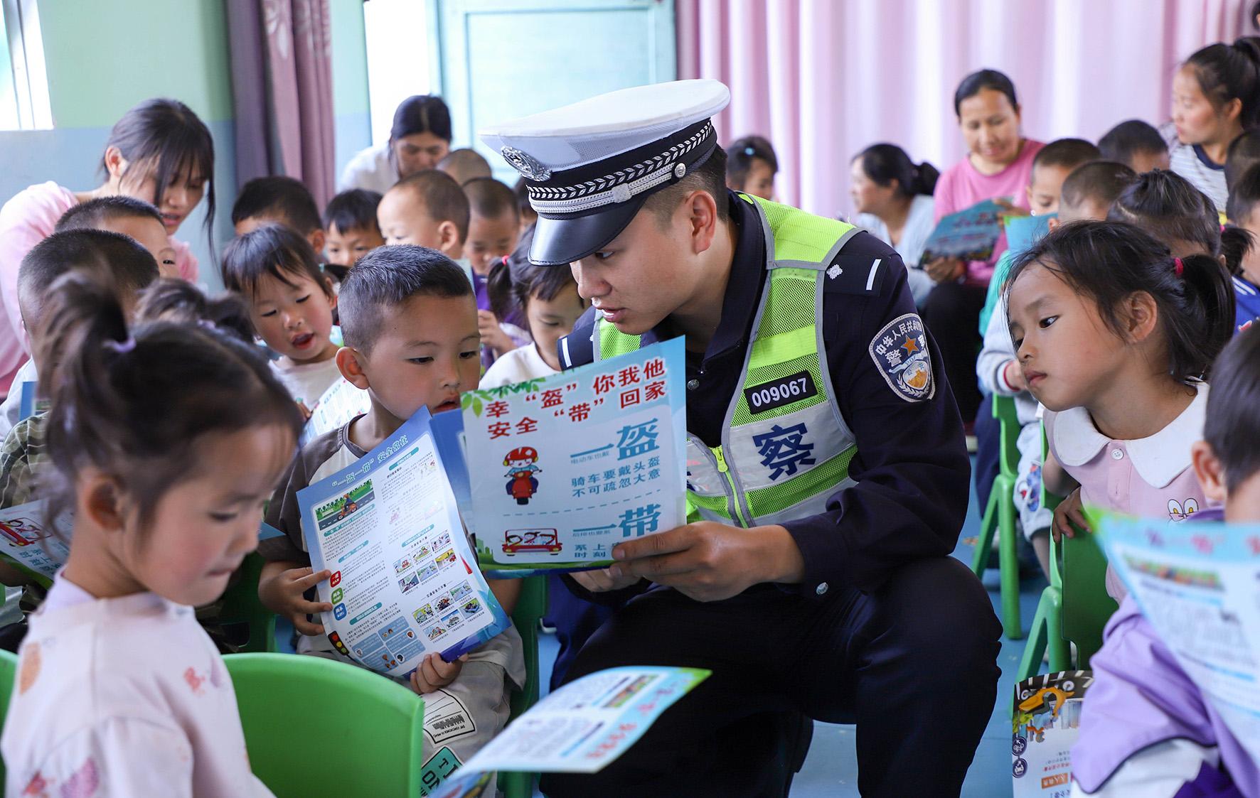 5月13日,貴州省丹寨縣公安局交通警察大隊(duì)民警走進(jìn)轄區(qū)龍泉鎮(zhèn)羊甲片區(qū)中心幼兒園開展“知危險(xiǎn) 會避險(xiǎn)”交通安全宣傳活動。